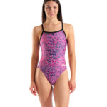 Der Arena Badeanzug Challenge Back Snakeskin Rosa bietet optimalen Komfort und Bewegungsfreiheit für sportliche Schwimmer.
