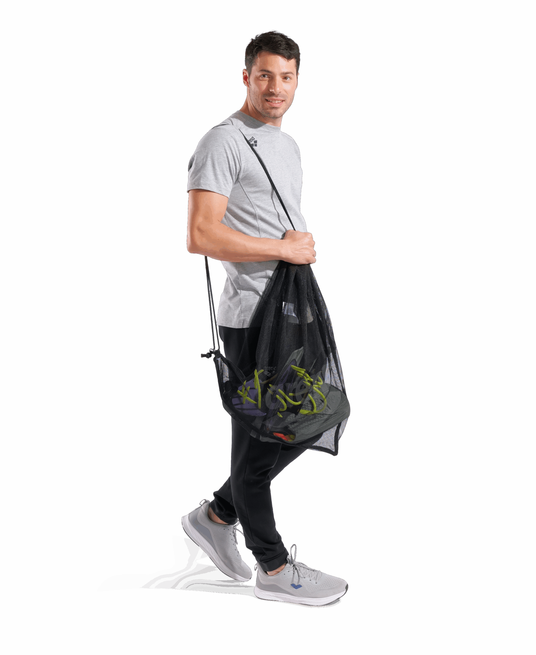 Die Tasche besteht aus strapazierfähigem Polyester-Mesh, das schnell trocknet. Damit musst du dir keine Sorgen über Schimmel oder unangenehme Gerüche machen. Perfekt für den aktiven Schwimmer, der immer in Bewegung ist!
