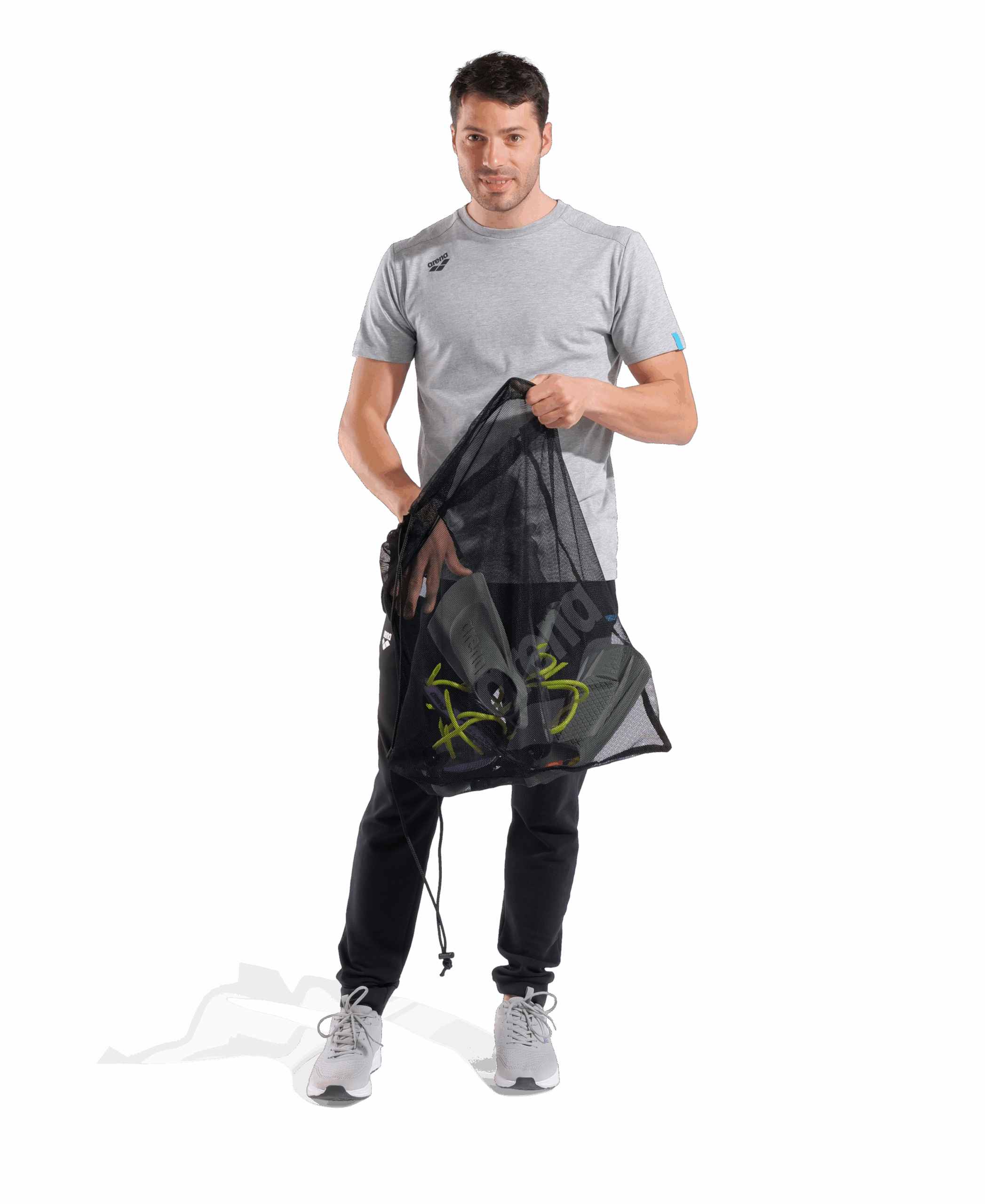 Mit der Arena Mesh Bag One Go Schwarz hast du ausreichend Platz für all deine Schwimmutensilien. Egal, ob Schwimmbekleidung, Handtuch oder andere Essentials – mit 40 Litern Kapazität ist diese Tasche perfekt für jeden Sportler.