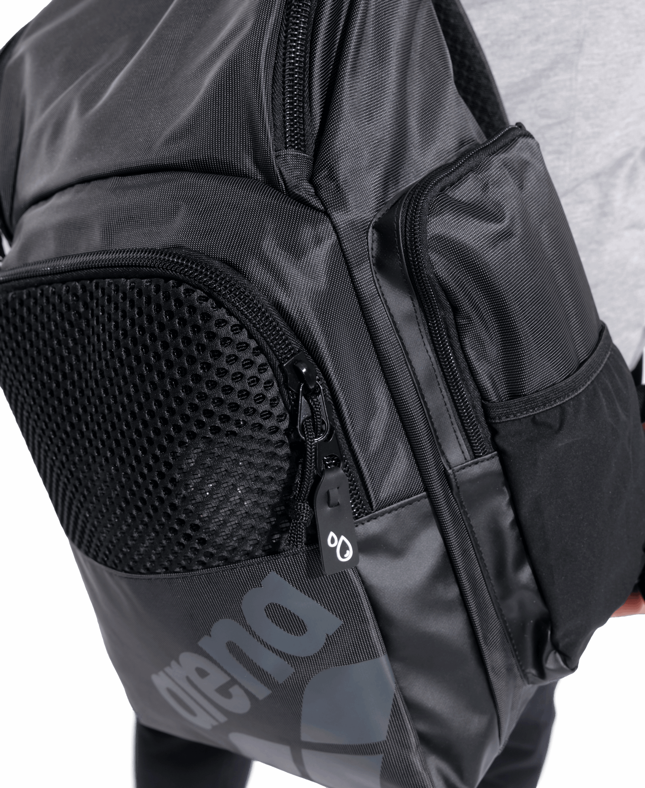 Der wasserabweisende Boden und das Hauptmaterial des Arena Rucksacks 35L One Go Schwarz schützen deine Sachen vor Feuchtigkeit und Schmutz. Perfekt, wenn du nach dem Schwimmen schnell wieder los musst, ohne dir Gedanken über nasse Sachen zu machen.